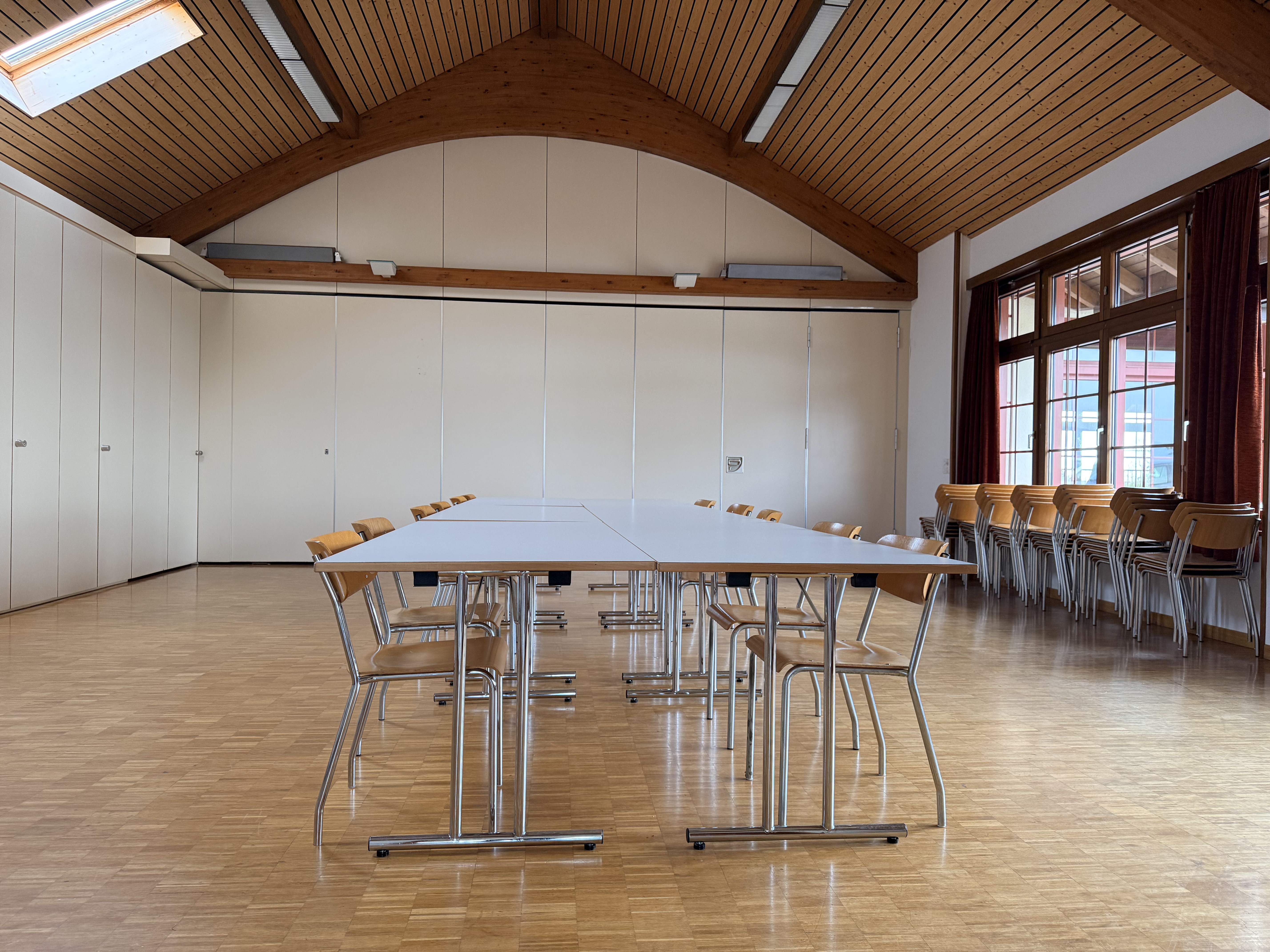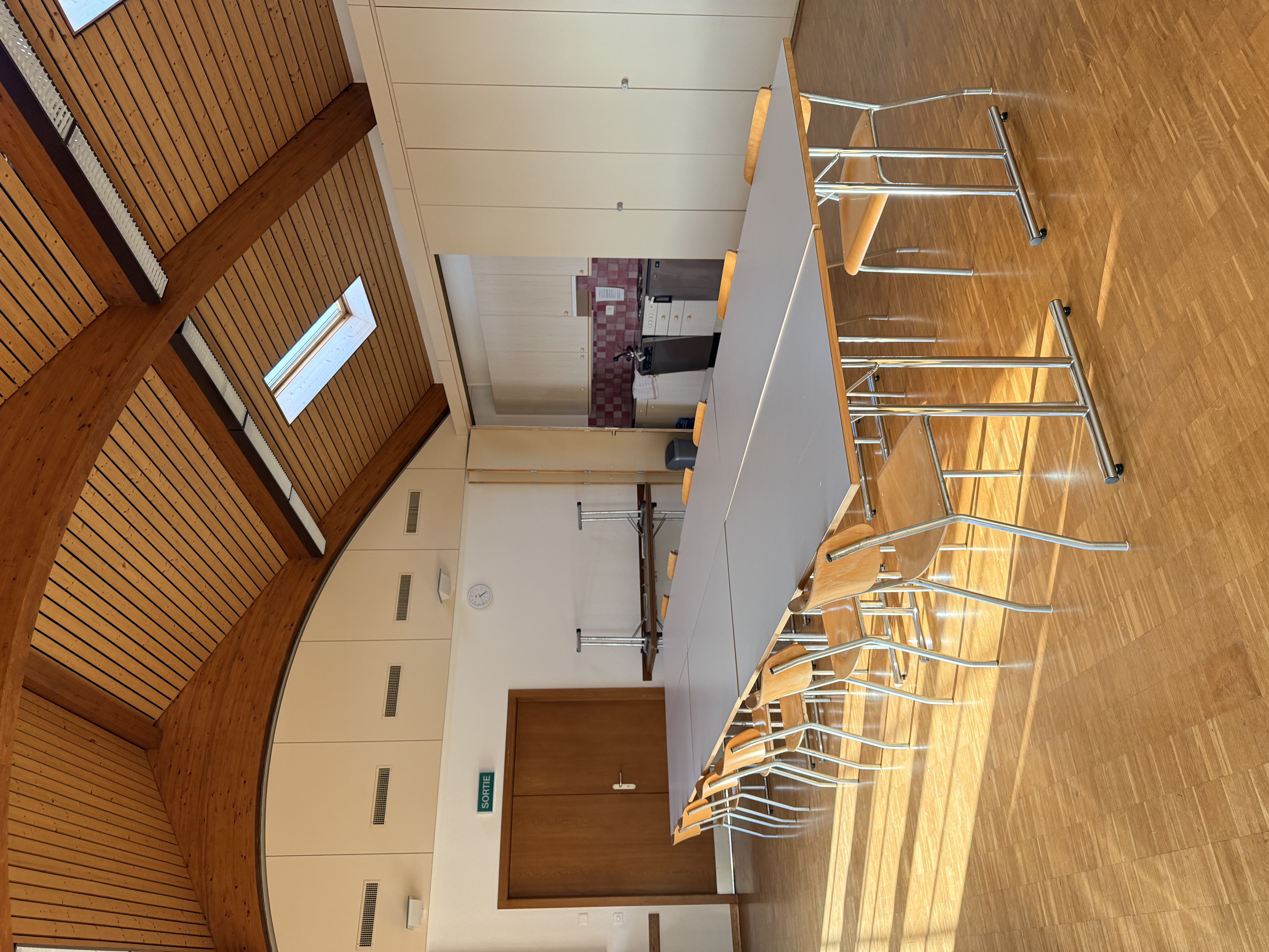 La petite salle peut accueillir environ 40 personnes. Elle est équipée d'une petite cuisine, frigo et lave vaisselle.